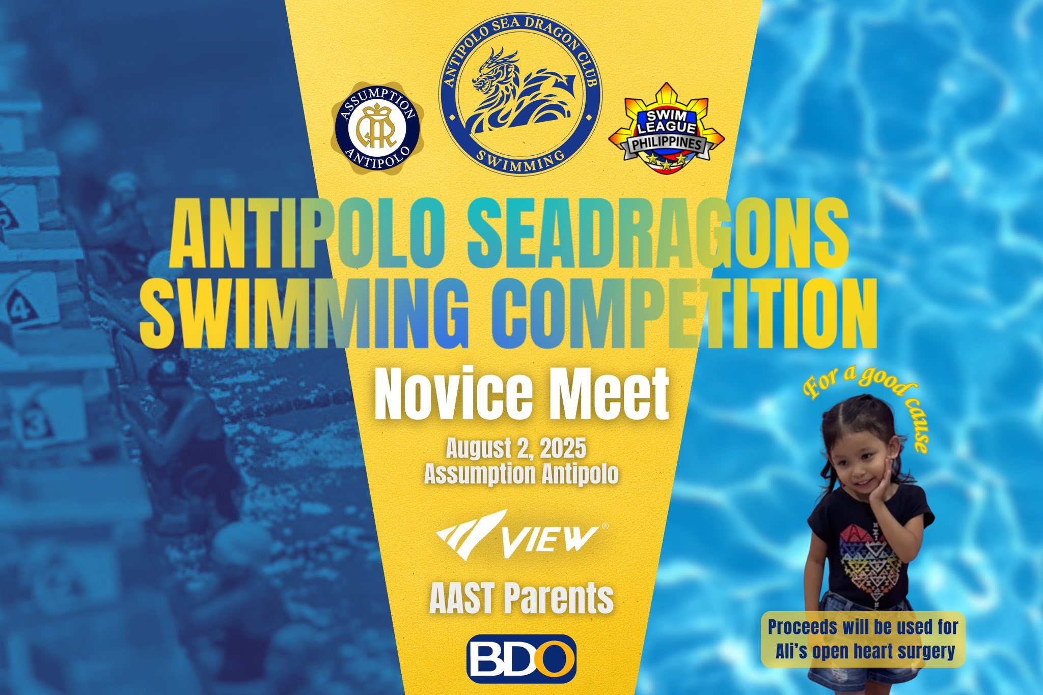 ANTIPOLO CITY — The usually serene waters of the Assumption Antipolo swimming pool turned into a vibrant sea of cheers, splashes, and smiles today as 16 swim teams dove into action at the SeaDragon Swimming Club Novice Meet “Swim for a Cause.”